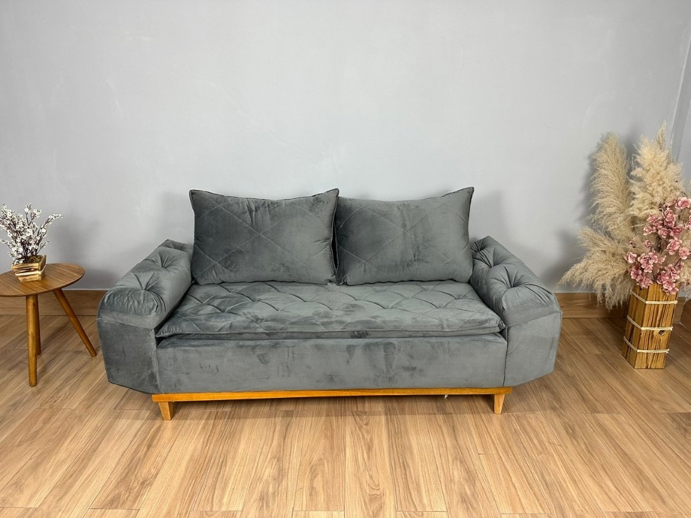 Sofá 3 lugares Berlim 2.00m – Cinza Veludo