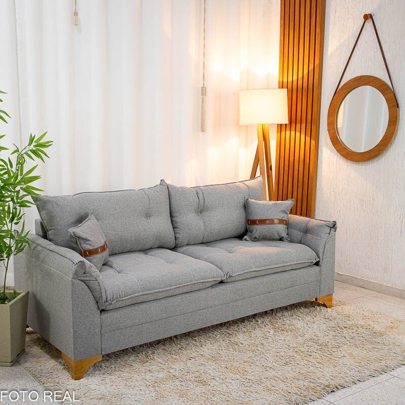 3{%%}Descrição{%%}Sofá 3 Lugares Creta Linho Cinza 27 Larg. 2.00m – Molas bonnel