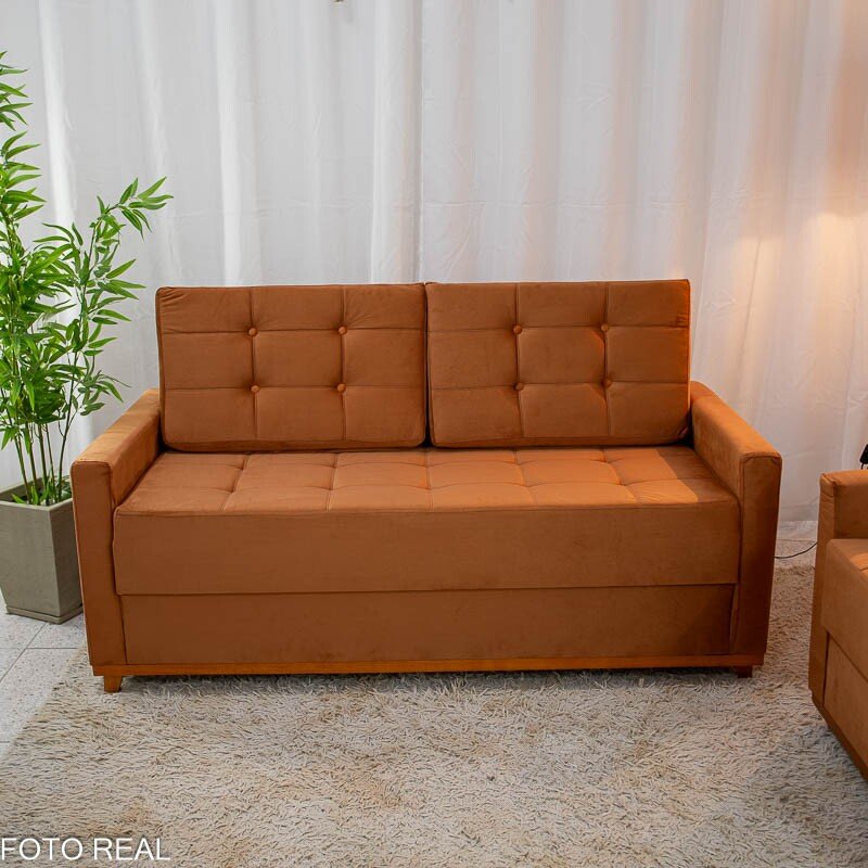 3{%%}Descrição{%%}Sofá 3 lugares Living Áustria Veludo Terracota A62 Larg. 1.70m