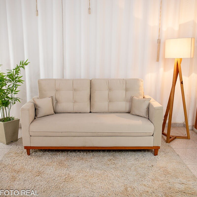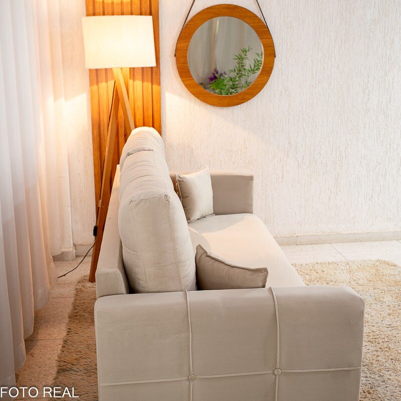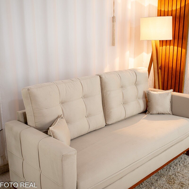 3{%%}Descrição{%%}Sofá 3 lugares Living Califórnia Veludo Bege Larg. 1.82m