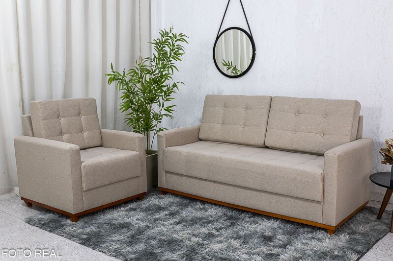 Sofá Áustria 3 Lugares + Poltrona Áustria Bege A57