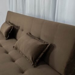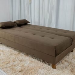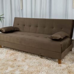 3{%%}Descrição{%%}Sofá Cama Arpoador Veludo Marrom Larg. 1.85m