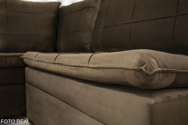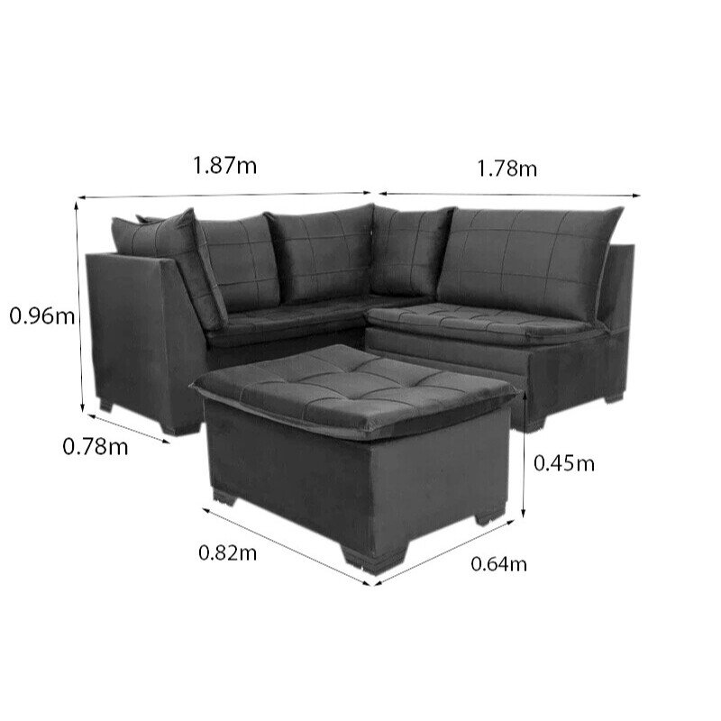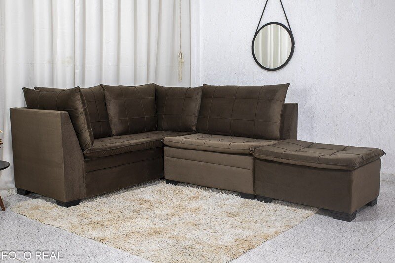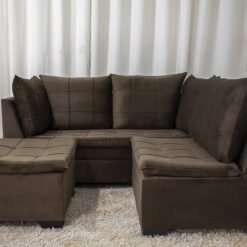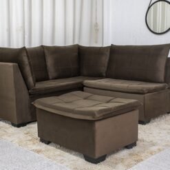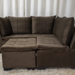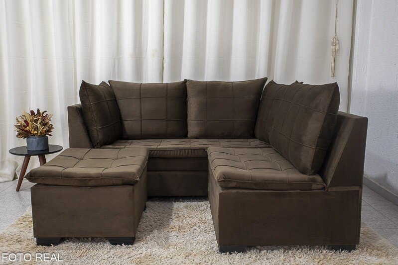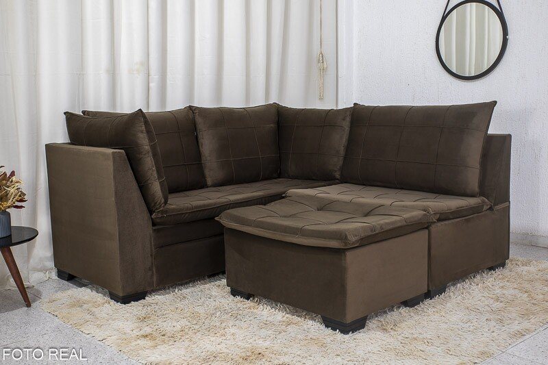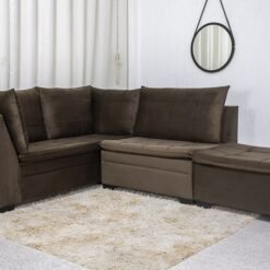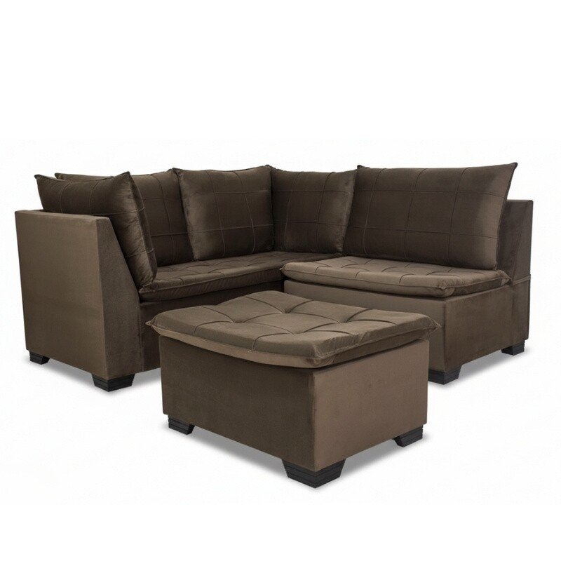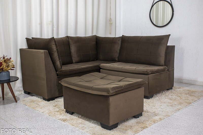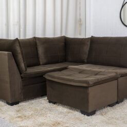 3{%%}Descrição{%%}Sofá Canto 5 lugares com Puff Viena Veludo Marrom A17