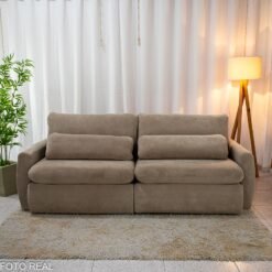 Esse modelo une conforto, praticidade e um visual elegante em um único produto. Com 2,30 metros de largura, ele acomoda bem até 4 pessoas e ainda vira uma cama espaçosa de 2,05×1,45m. ideal para receber visitas ou relaxar assistindo TV. Seu assento retrátil com pillow de 17cm e molas bonnel garante conforto mesmo por longas horas, e o encosto reclinável com almofadas soltas oferece aquele apoio extra para o corpo.