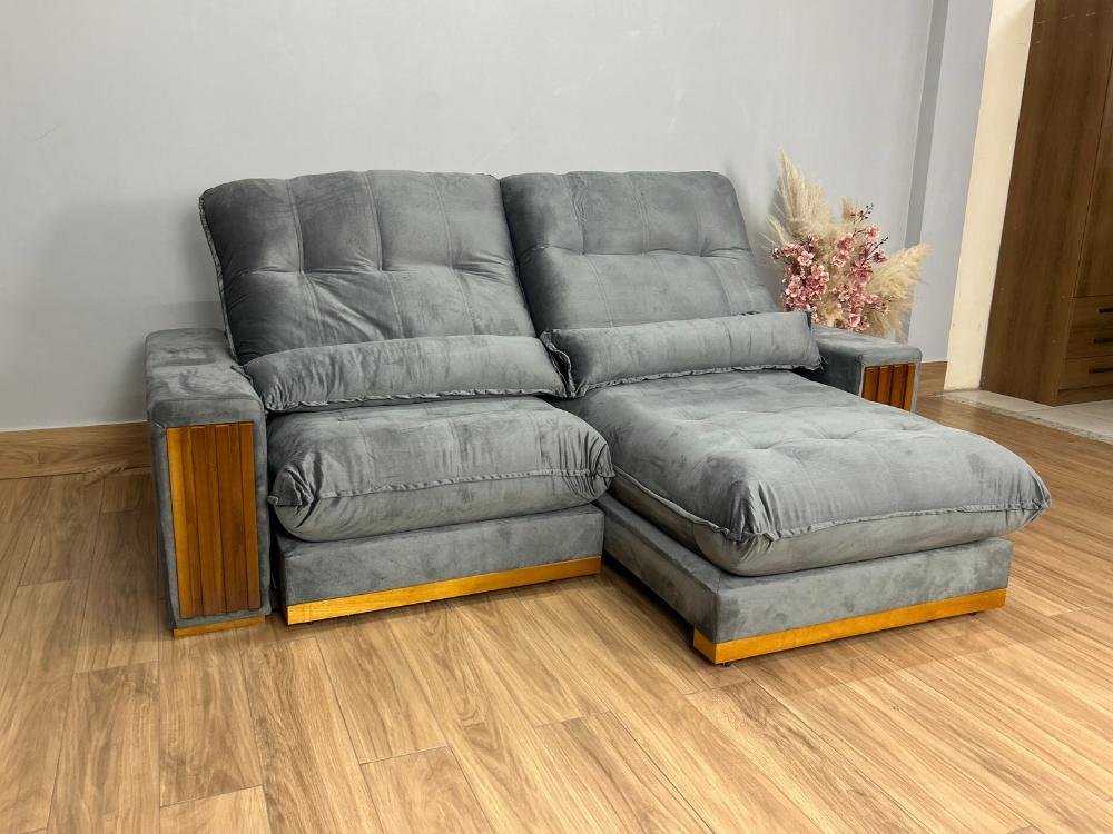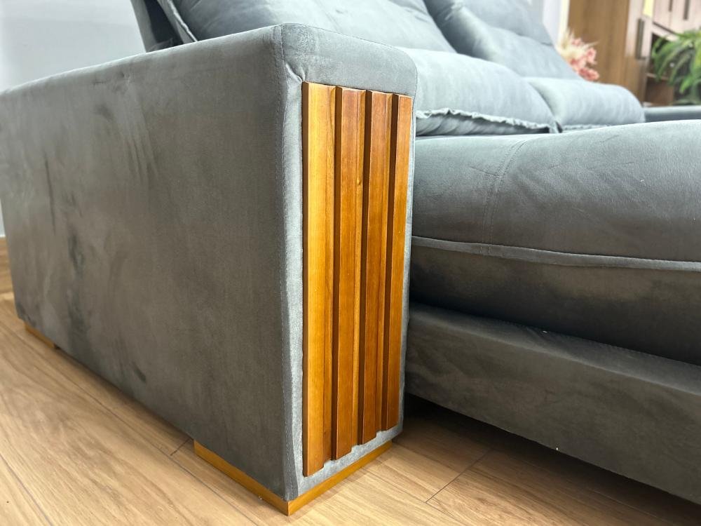 Resvestido com espuma d28, com detralhe ripado com madeira tauari.