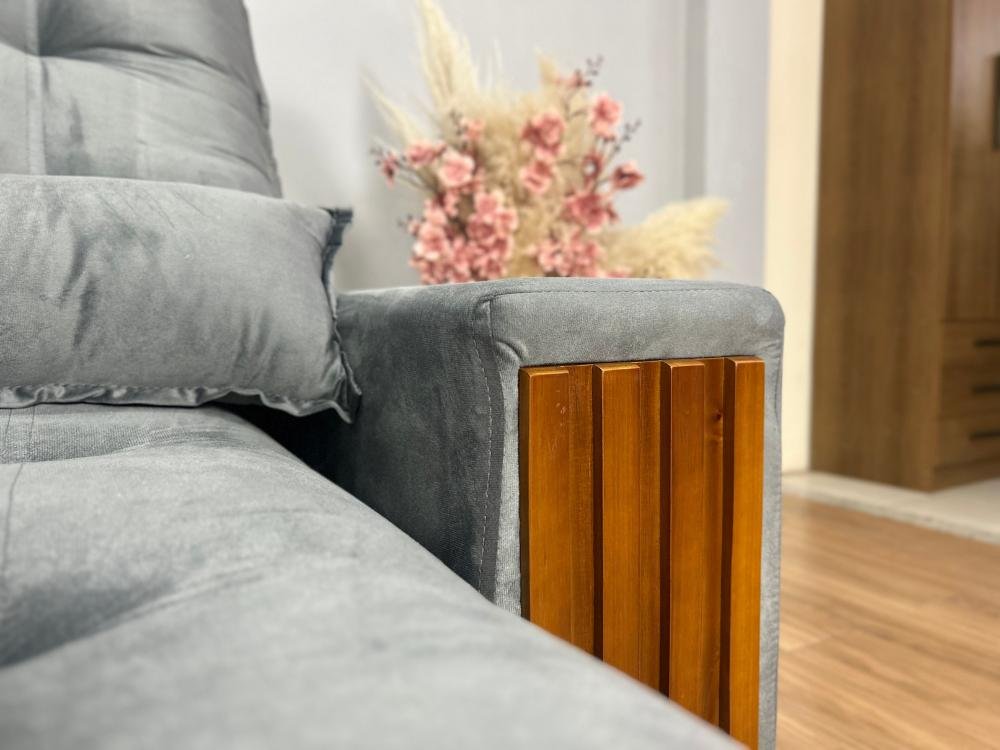 Resvestido com espuma d28, com detralhe ripado com madeira tauari.