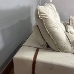 Com detalhe em couro nas laterais e em cima do braço.