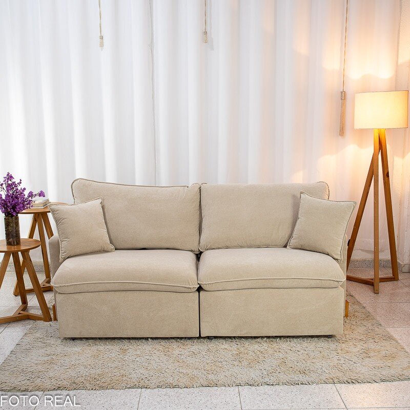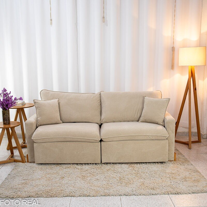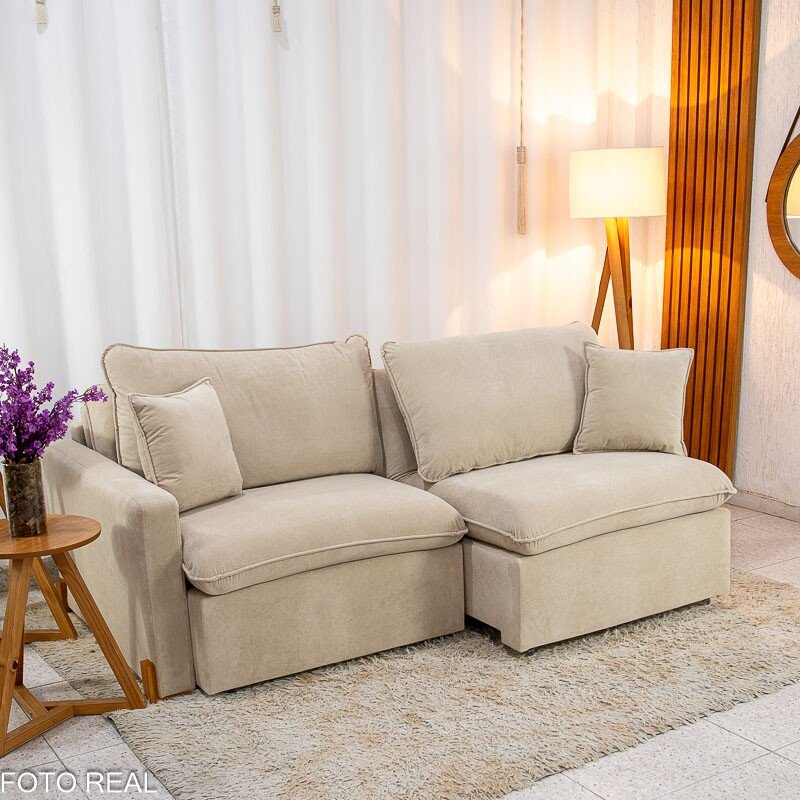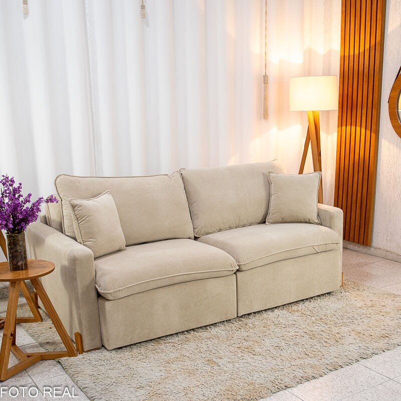 3{%%}Descrição{%%}Sofá Retrátil Luma 2.00m Veludo Premium Bege 37 – Sem Caixa