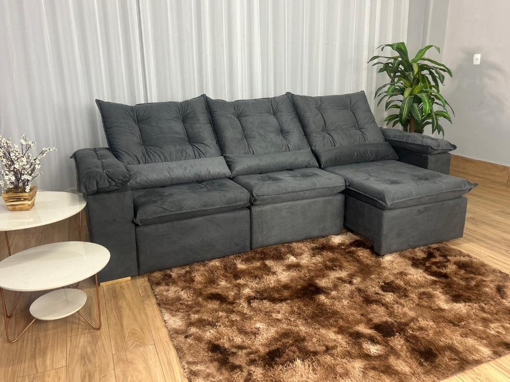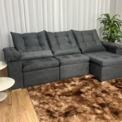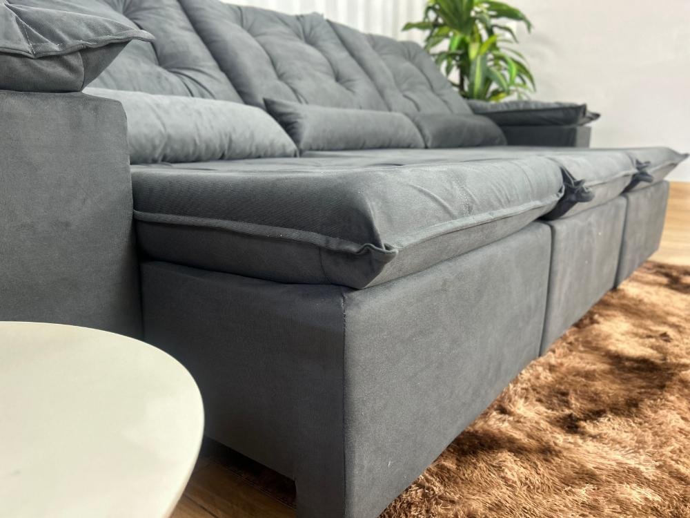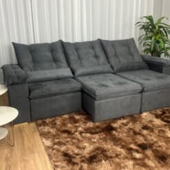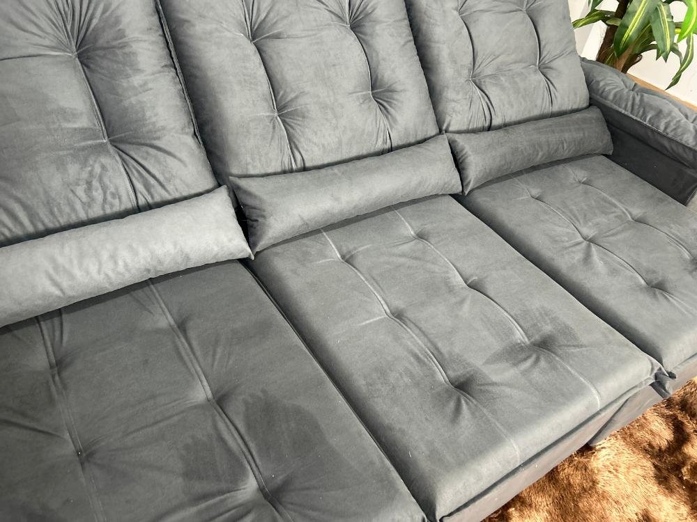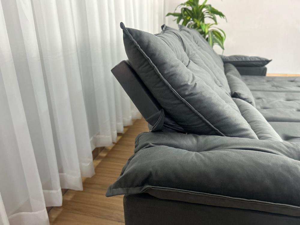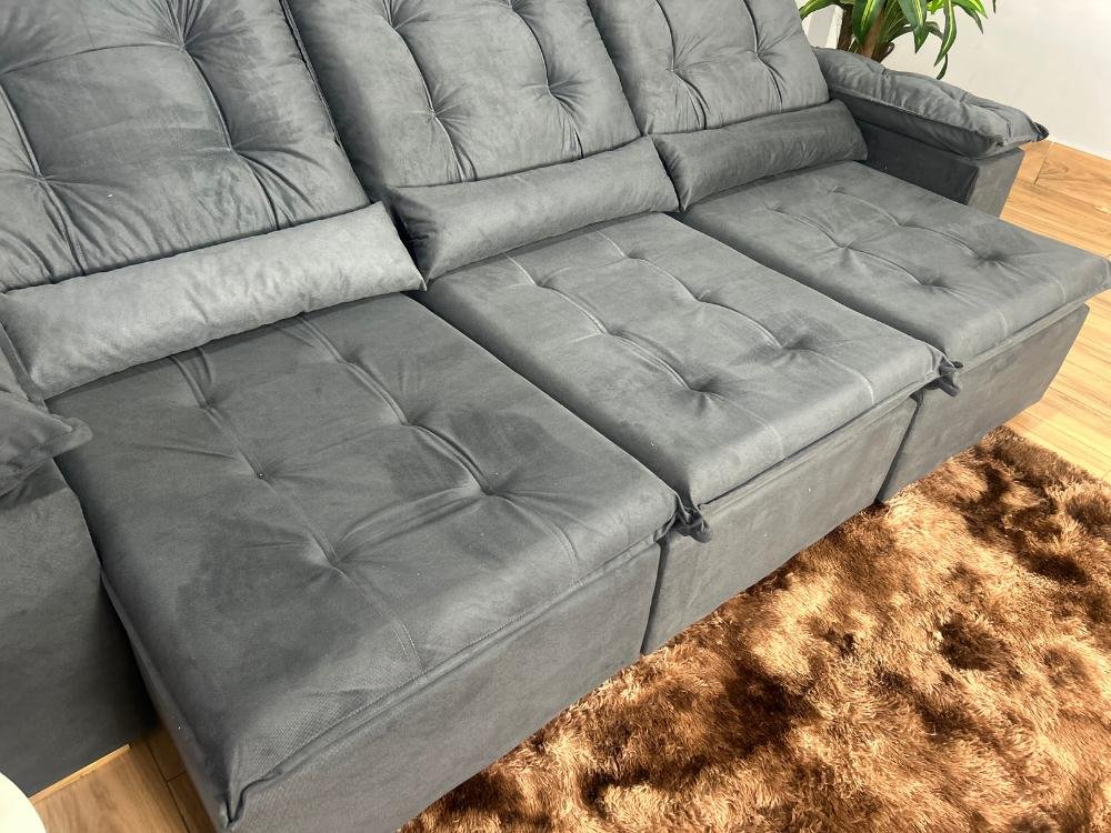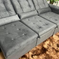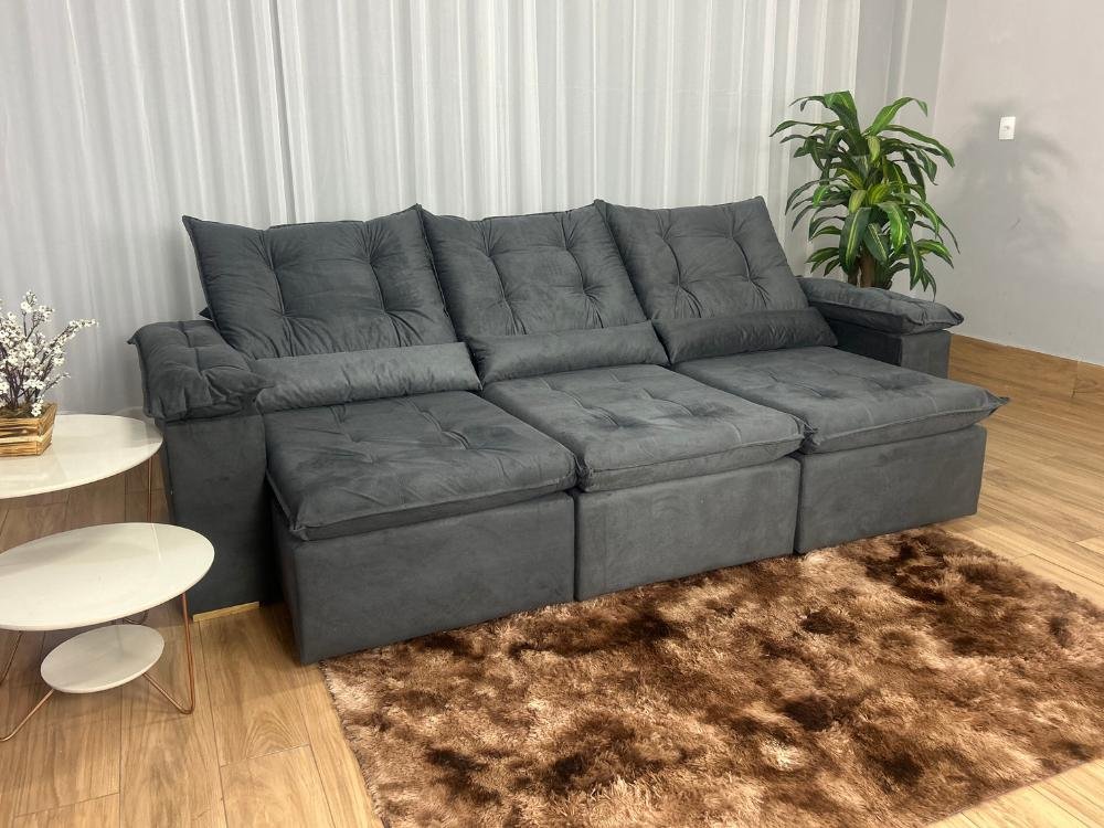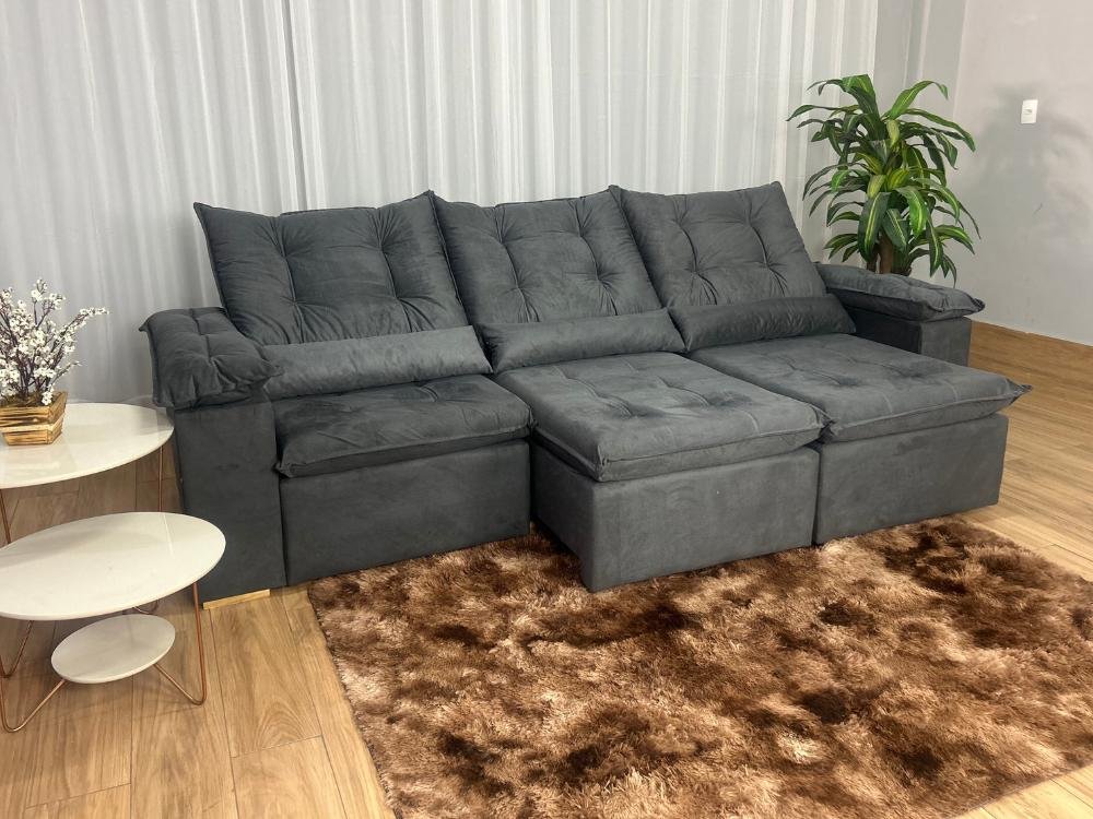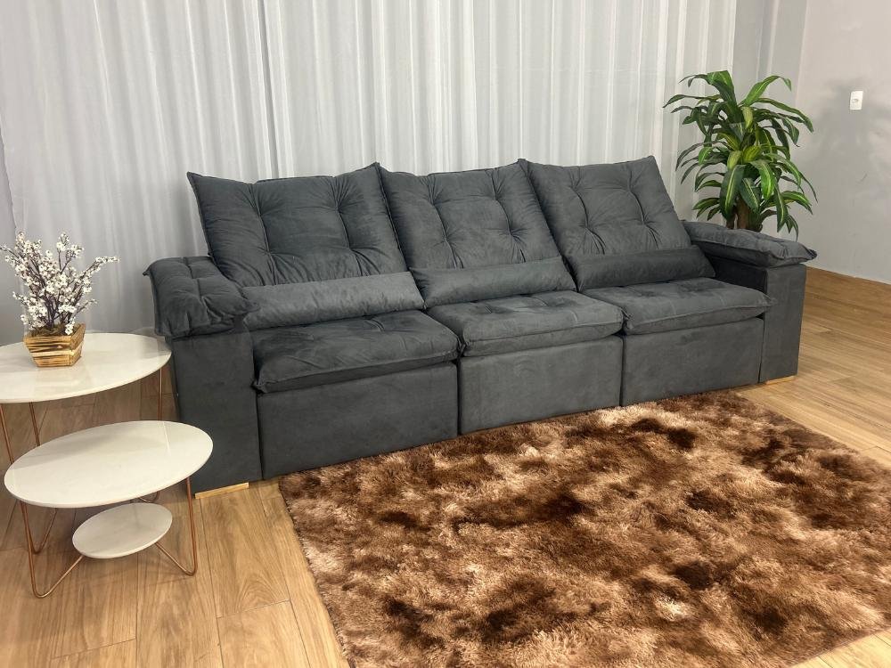 Sofá Retrátil Reclinável Atenas 2.70m – Cinza Veludo