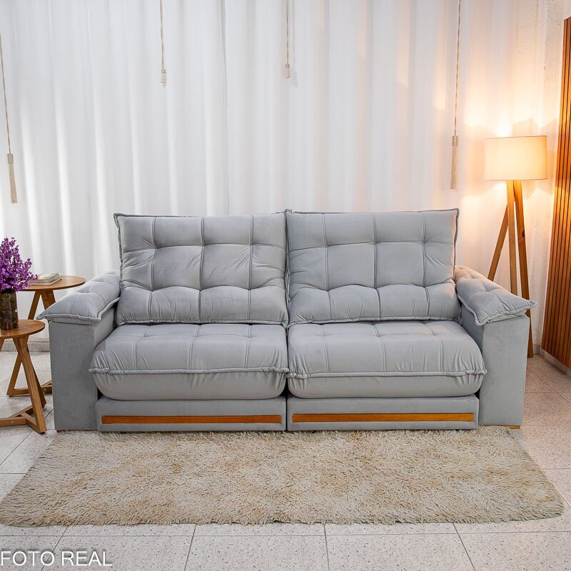3{%%}Descrição#Benéficos das molas ensacadas{%%}Sofá Retrátil Reclinável Barcelona 2.30m Veludo Prata 321- D33 e Molas Ensacadas