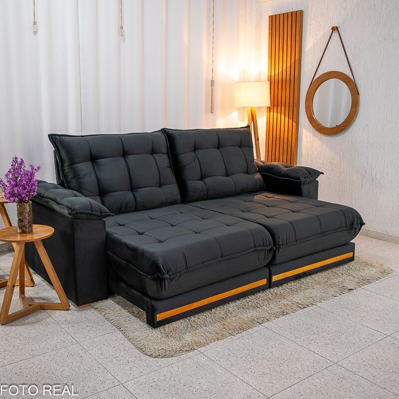 3{%%}Descrição#Benéficos das molas ensacadas{%%}Sofá Retrátil Reclinável Barcelona 2.30m Veludo Preto 322 – D33 e Molas Ensacadas