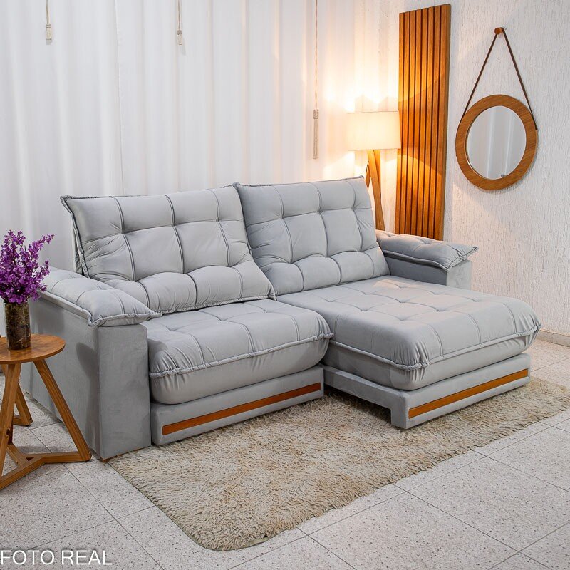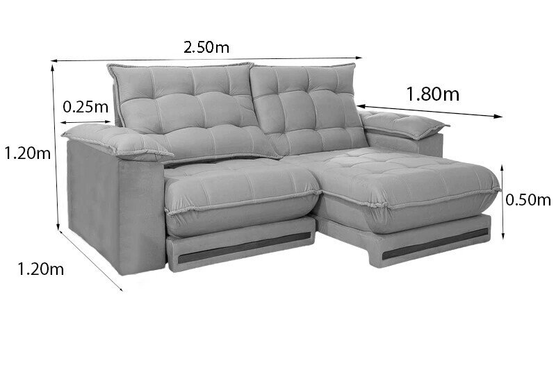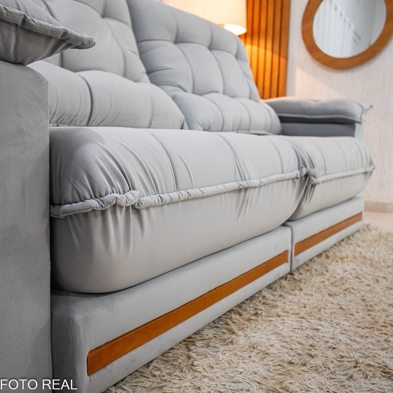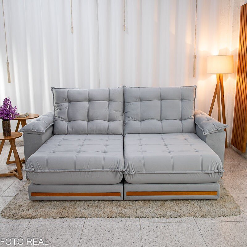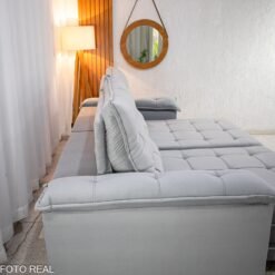 Sofá Retrátil Reclinável Barcelona 2.50m Veludo Prata 321 – D33 e Molas Ensacadas