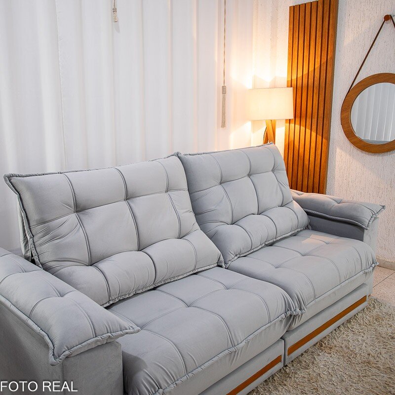 3{%%}Descrição#Benéficos das molas ensacadas{%%}Sofá Retrátil Reclinável Barcelona 2.50m Veludo Prata 321 – D33 e Molas Ensacadas