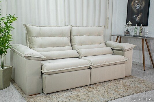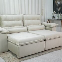 3{%%}Descrição#Vídeo{%%}Sofá Retrátil Reclinável Emanuelly 2.00m Veludo Bege 01- D28 Soft