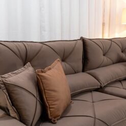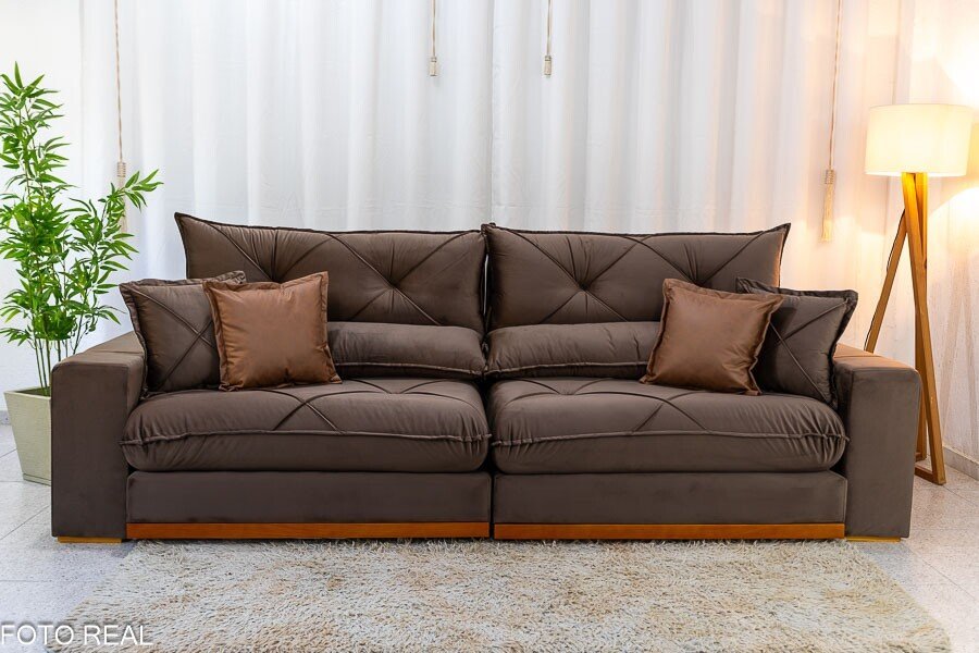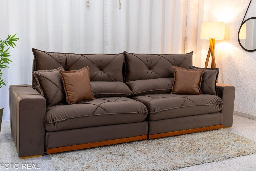 3{%%}Descrição#Benefícios das molas ensacadas{%%}Sofá Retrátil Reclinável Gran Bello 2.90m Veludo Marrom – Molas Ensacadas