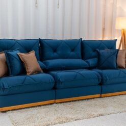 3{%%}Descrição#Benefícios das molas ensacadas{%%}Sofá Retrátil Reclinável Gran Bello 3.20m Veludo Azul – Molas Ensacadas