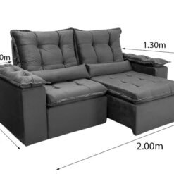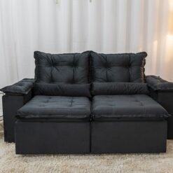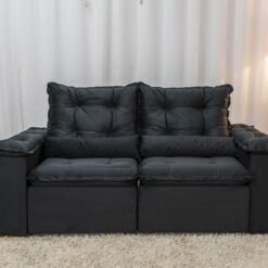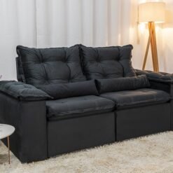3{%%}Descrição{%%}Sofá Retrátil Reclinável Grécia 2.00m Veludo Preto – Sem caixa