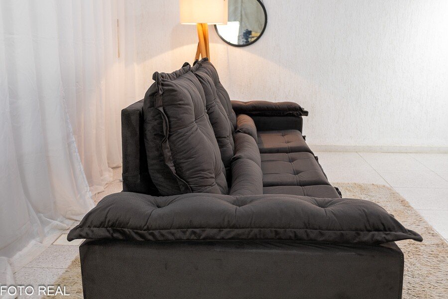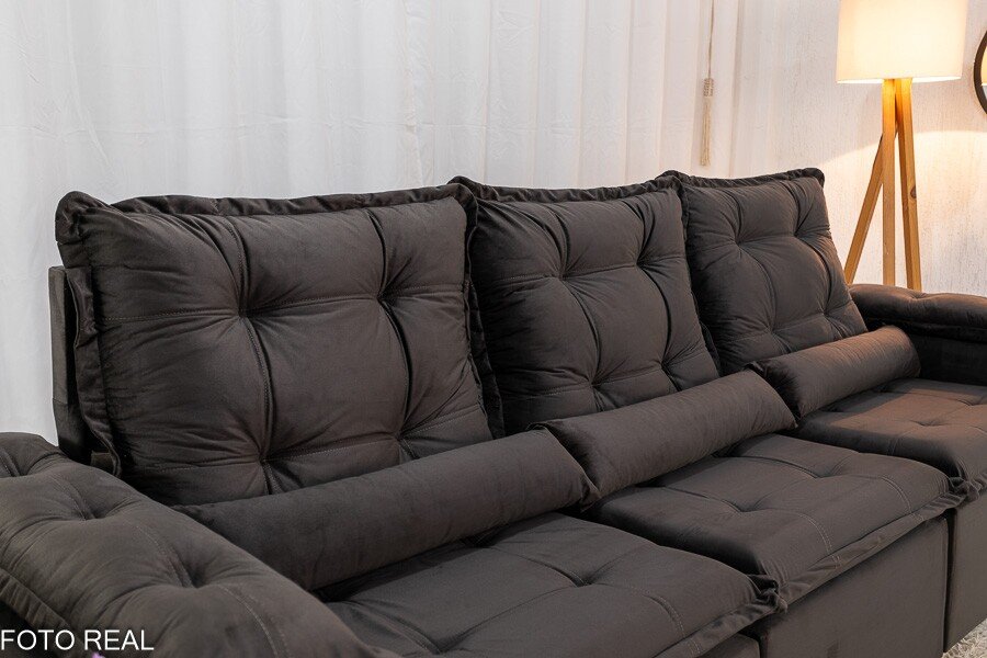 Atenção: Informamos que é normal haver uma abertura entre os módulos dos sofás retráteis. Essa abertura é necessária para evitar atrito entre os módulos durante o movimento de abrir e fechar, prevenindo o desgaste do tecido.