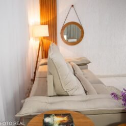 Informamos que é normal haver uma abertura entre os módulos dos sofás retráteis. Essa abertura é necessária para evitar atrito entre os módulos durante o movimento de abrir e fechar, prevenindo o desgaste do tecido.