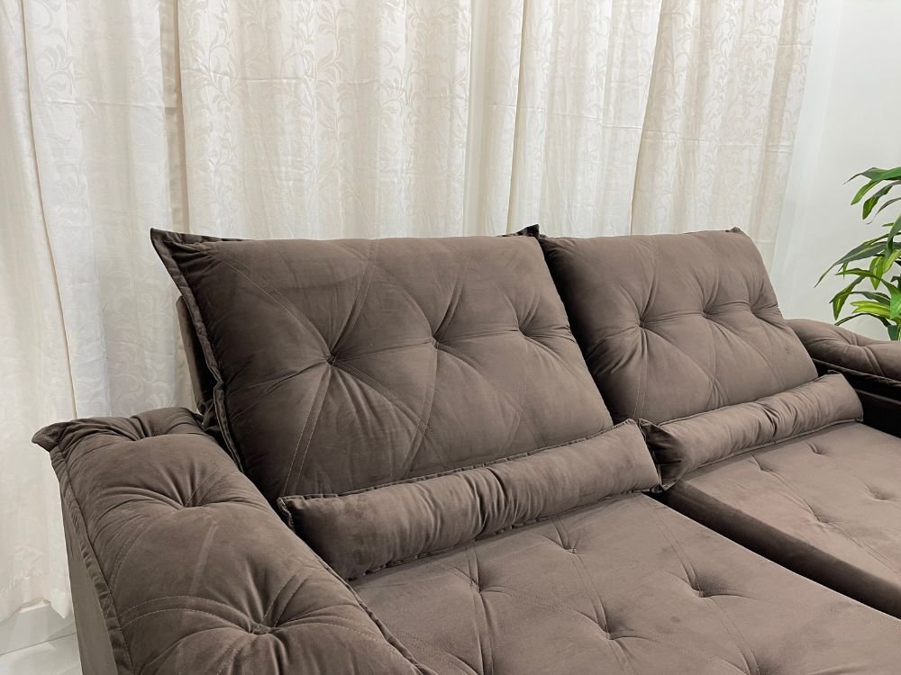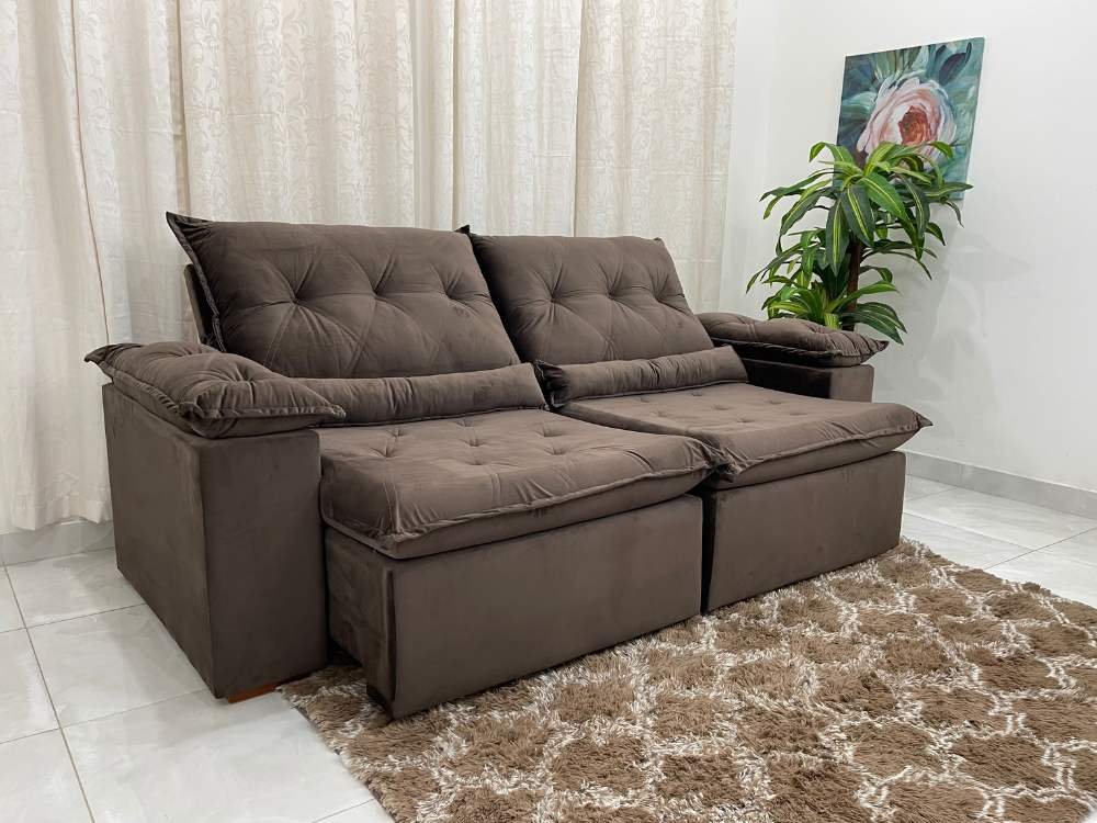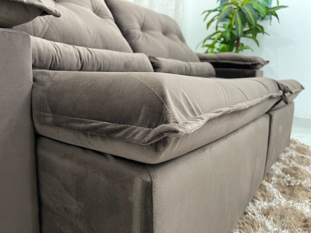 Sofá Retrátil e Reclinável Las Vegas 2.30m – Marrom Veludão