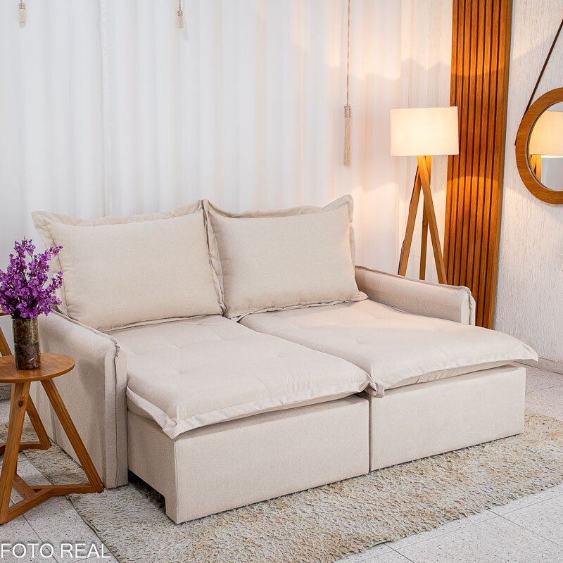 3{%%}Descrição{%%}Sofá Retrátil Reclinável Lima 2.00m Linho Bege A57 – Sem Caixa
