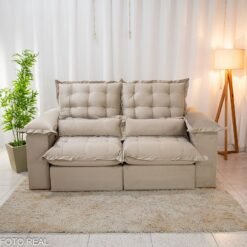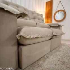 3{%%}Descrição{%%}Sofá Retrátil Reclinável Maldivas 2.10m Veludo Bege A32 – D28 Pró Aditivada