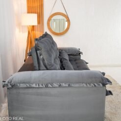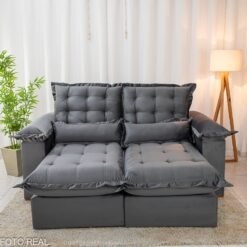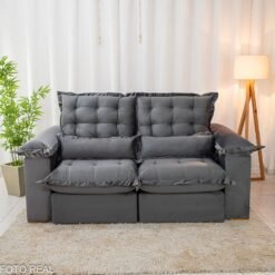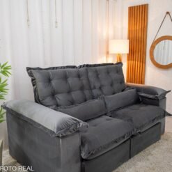 3{%%}Descrição{%%}Sofá Retrátil Reclinável Maldivas 2.10m Veludo Grafite A15 – D28 Pró Aditivada