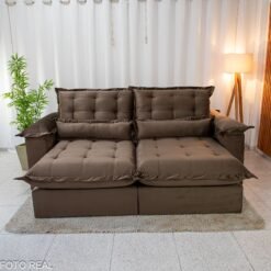 3{%%}Descrição{%%}Sofá Retrátil Reclinável Maldivas 2.50m Veludo Marrom A17 – D28 Pró Aditivada