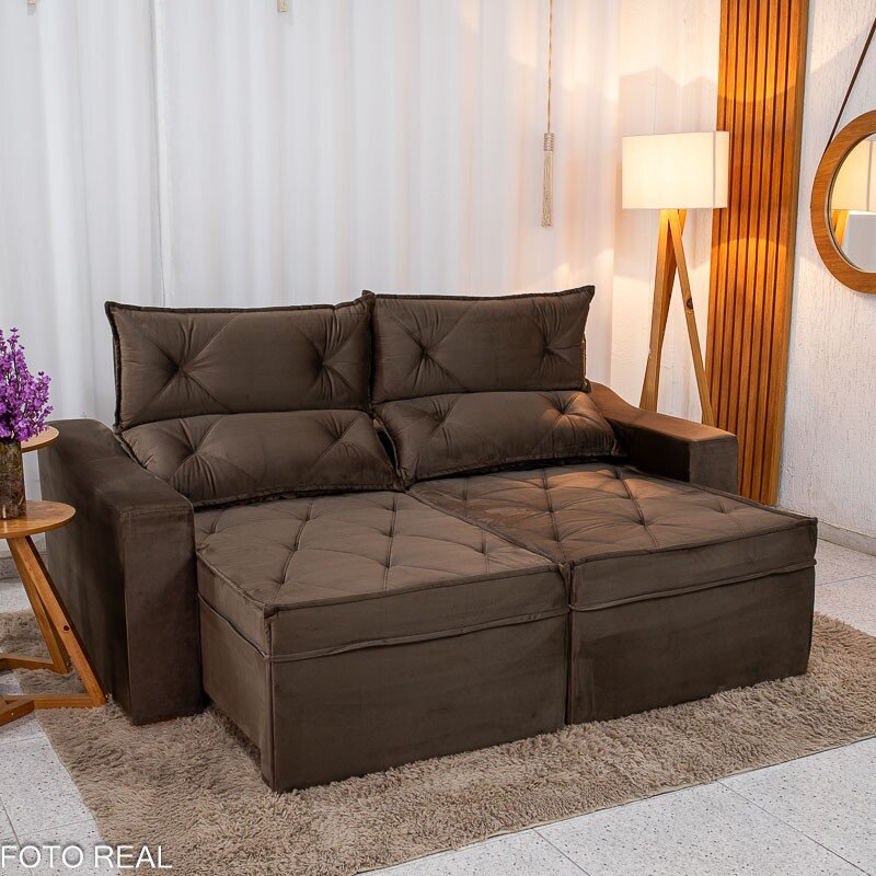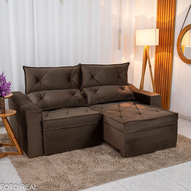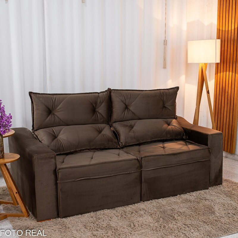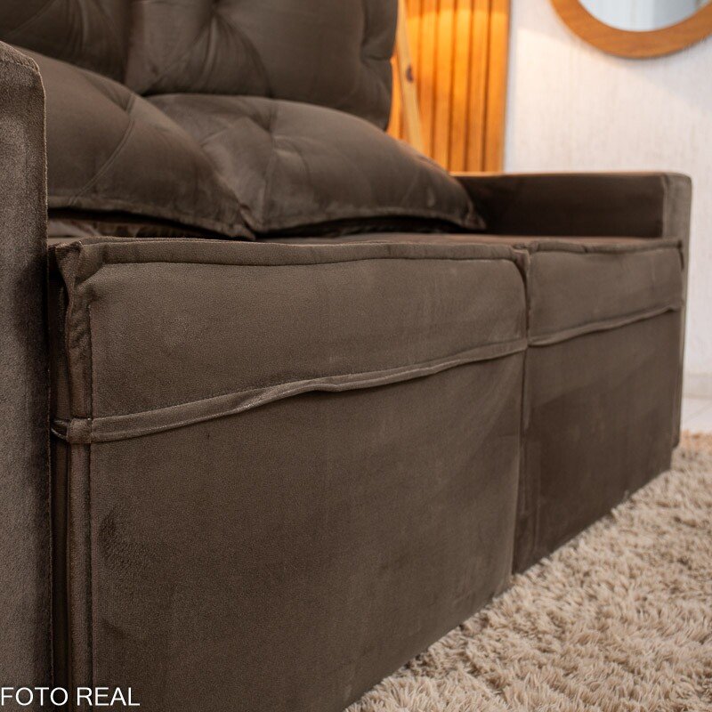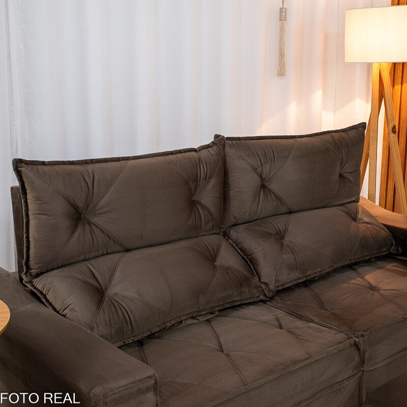 3{%%}Descrição{%%}Sofá Retrátil Reclinável Moscou 2.00m Veludo Marrom A17