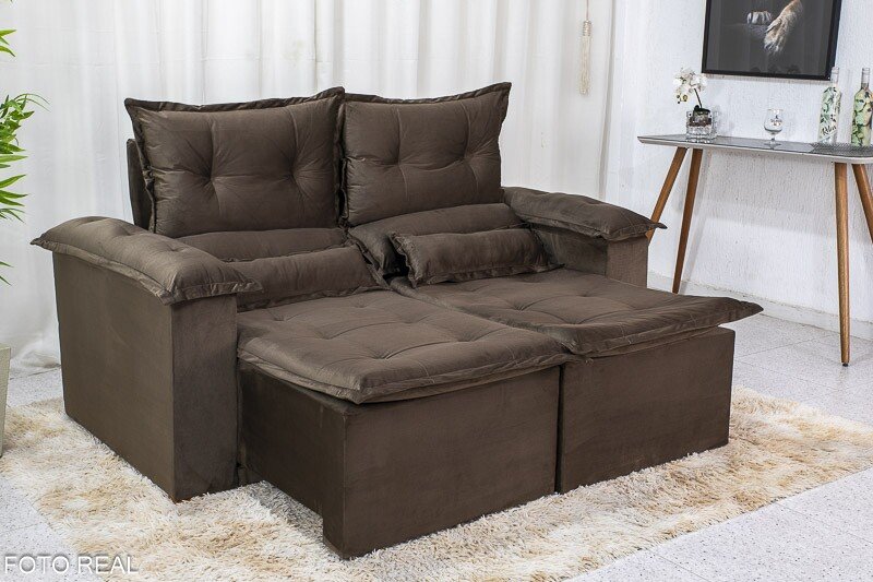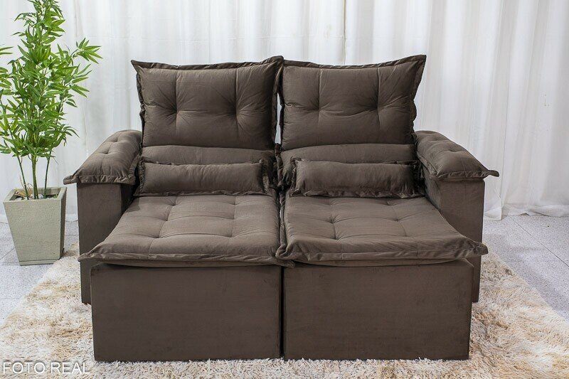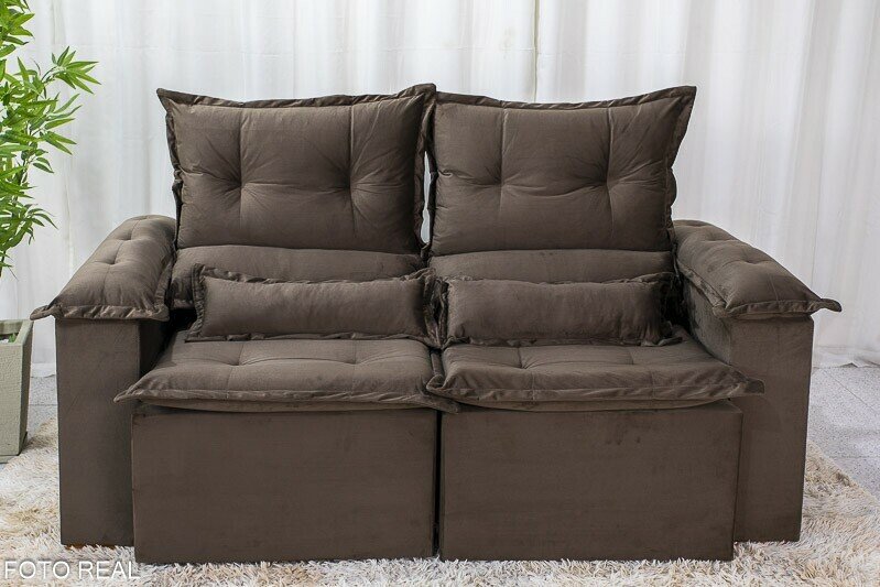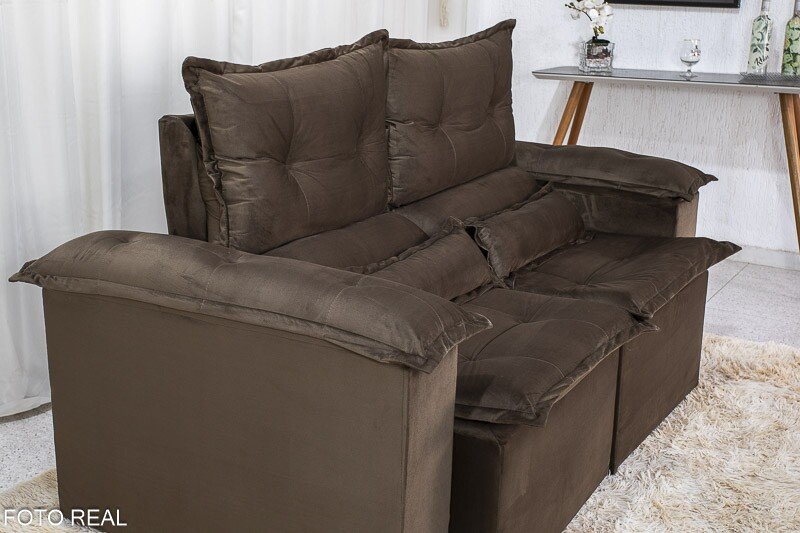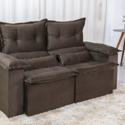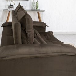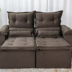 3{%%}Descrição{%%}Sofá Retrátil Reclinável Nicole 1.80m Veludo Marrom A17
