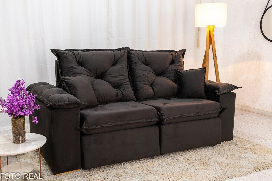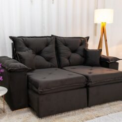 3{%%}Descrição{%%}Sofá Retrátil Reclinável Porto Madri 2.00m Veludo Marrom – D28 Pró Aditivada