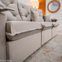 Informamos que é normal haver uma abertura entre os módulos dos sofás retráteis. Essa abertura é necessária para evitar atrito entre os módulos durante o movimento de abrir e fechar, prevenindo o desgaste do tecido.
