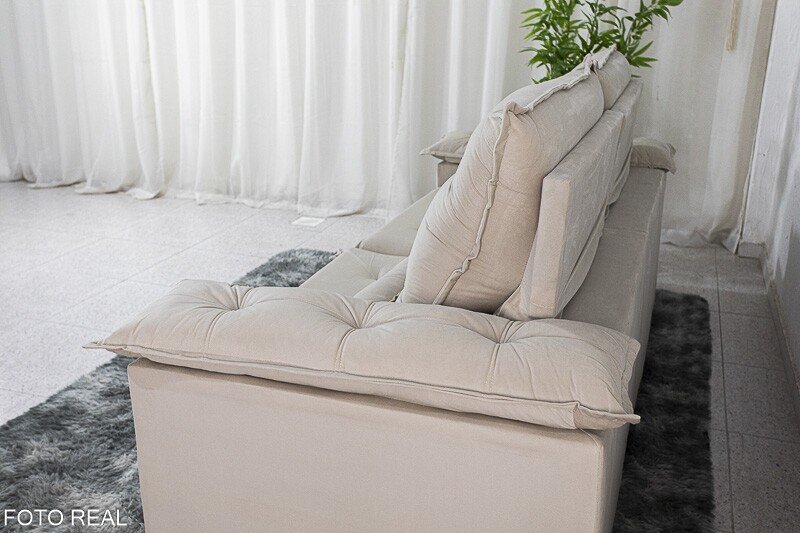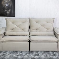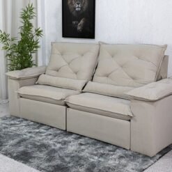 3{%%}Descrição{%%}Sofá Retrátil Reclinável Roma 2.00m Veludo Bege 01 – D28 Soft