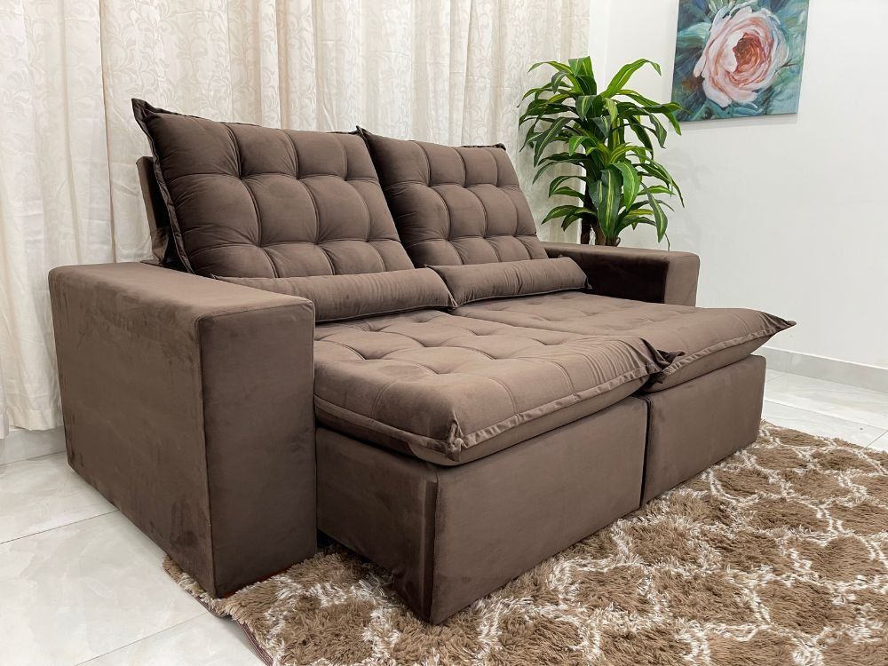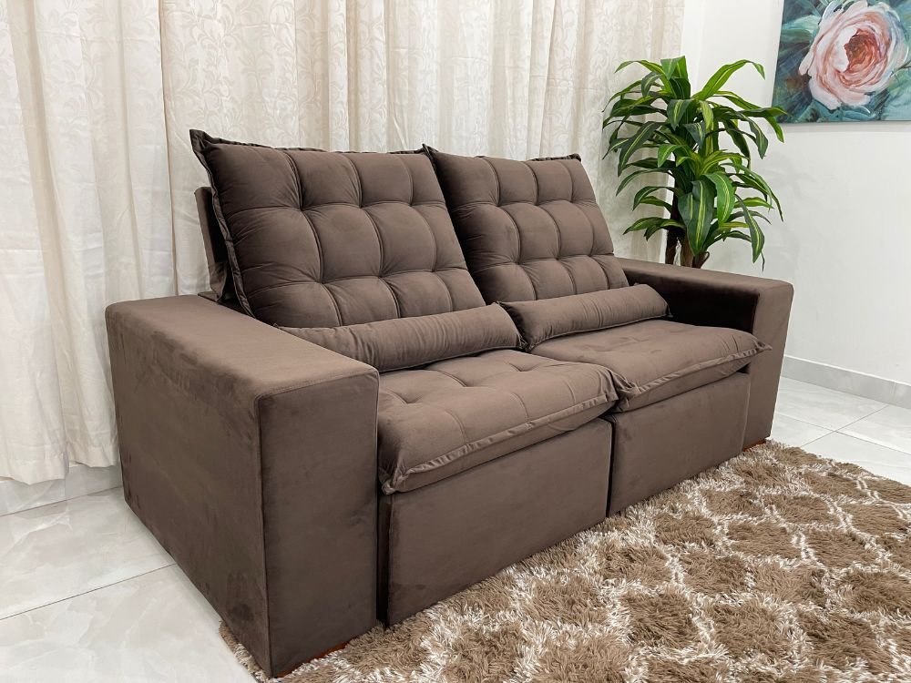 Sofá Retrátil Reclinável Small 2.00m – Marrom Veludão