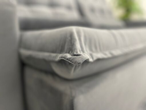 Acolchoados com fibra siliconada e flocos, medem 25cm de largura cada um. Tecido com um toque macio e gostoso, o tecido utilizado é o veludão. Estrutura É utilizada a Madeira de Eucalipto 100% de reflorestamento, sendo um produto ecologicamente correto e sustentável. para fixar as partes, são utilizados grampos galvanizados, permitindo uma melhor fixação da estrutura.