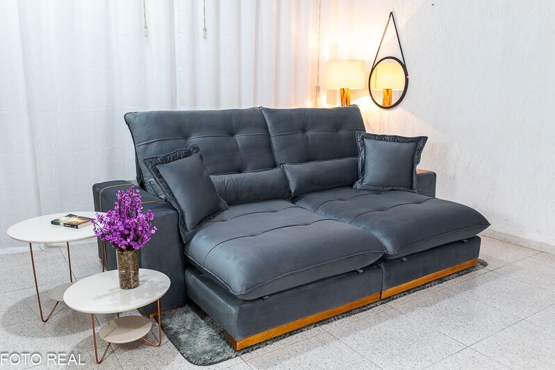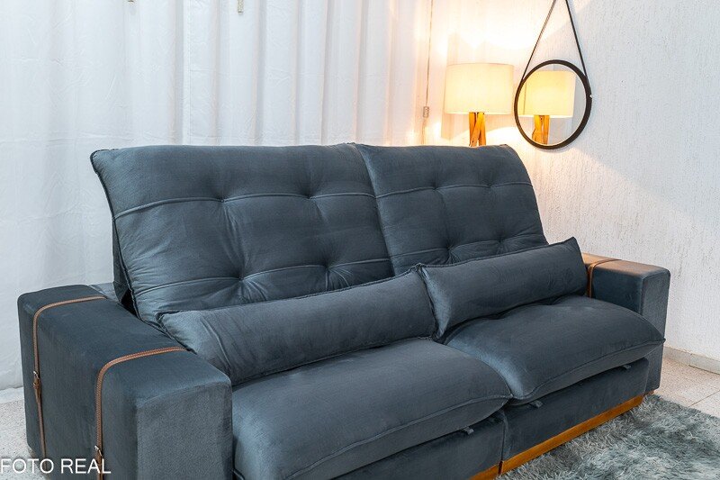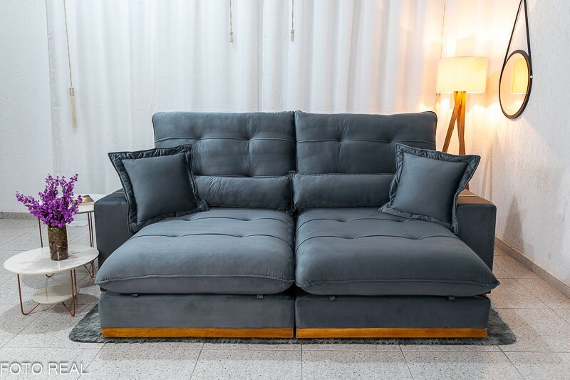 Sofá Retrátil Reclinável Toronto 2.50m Veludo Chumbo 4053 – Molas Ensacadas