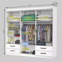 Roupeiro Solteiro Estrela Branco 6 Portas 2 Gavetas C/Pés Larg. 1.50m – Sallêto