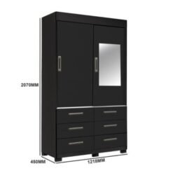 Guarda-Roupa Buzios 2 portas de correr com espelho 6 gavetas – Preto