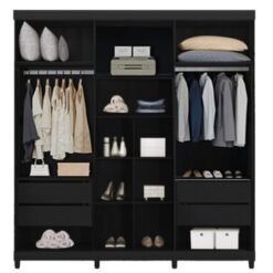 Guarda-Roupa Veneza Plus c/ espelho 3 portas e 4 gavetas – Preto