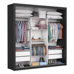 Guarda-Roupa Buzios 2 portas de correr Sem espelho 6 gavetas – Preto
