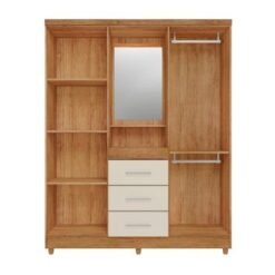 Guarda-Roupa Capelinha Lyon 4 portas com espelho – Cedro/Areia