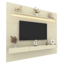 Home Suspenso Soberano Reflecta Larg. 2.30m Nature/Off C/Led 100% MDF para TV até 85″ – Gelius