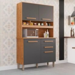 Armário Kit de Cozinha Sofia 4 Portas 2 Gavetas – Cinamomo/Grafite