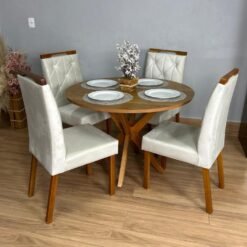 Mesa de Jantar Simpatia 1.08×1.08 Circular Com 4 cadeiras Jasmim – Cinamomo/Bege