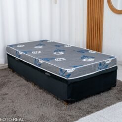Box Baú Solt. Pop Veludo Preto Nature + Colchão Solt. Soffie Lotus 100% Espuma D20 88x188x12 – Nosso Sonho