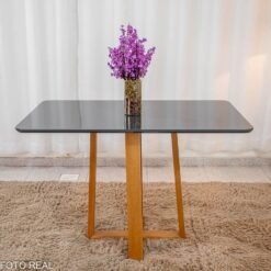 Mesa de Jantar Pedro 120×80 Vidro Grafite/Base Madeira Art Assento – Entregue Montada