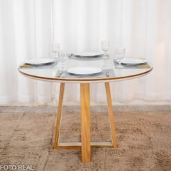 Mesa de Jantar Siena Redonda 100cm Cinamomo/Vidro Off – Minas Plac