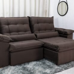 Sofá Retrátil Reclinável Ibis 2.50m Veludo Marrom 815 – D33 e Molas Ensacadas