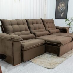 Sofá Retrátil Reclinável Maldivas 2.10m Veludo Marrom A17 – D28 Pró Aditivada