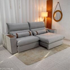 Sofá Retrátil Reclinável Toronto 2.50m Linho Cinza 2005 – Molas Ensacadas